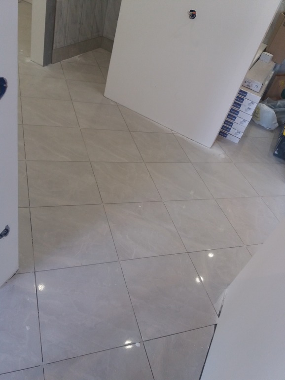 У нас одинаковая плитка (большая) в прихожей и на кухне. Смотрится отлично, нам нравится
