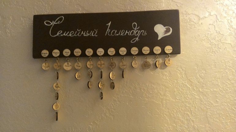 Первый раз вижу семейный календарь! Оч красивый! Это там месяцы,а на висюльках даты/имена, так?