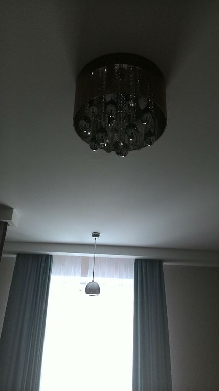 Эту висюльку сложно назвать светильником,света от него ну очень мало.Мы его как ночник используем.Просто у нас комната визуально разделена на две зоны,поэтому и два источника света.