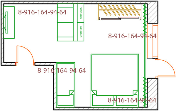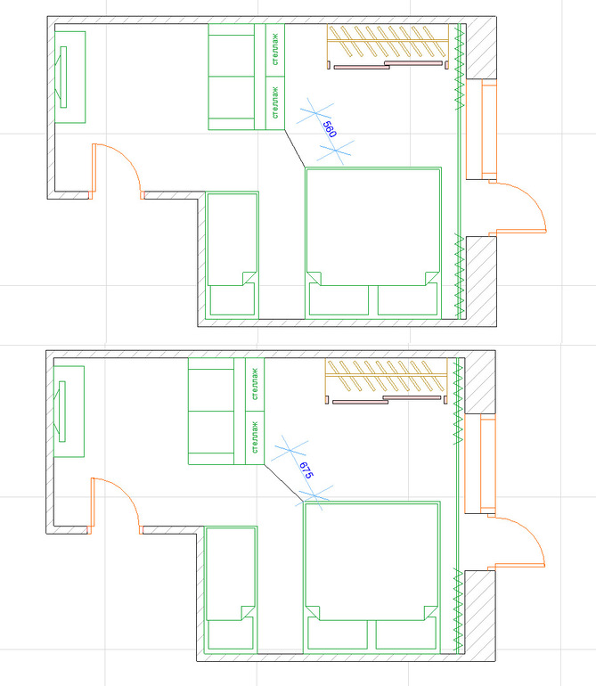 Главная задача это зонировать комнату, в итоге должна быть Спальня и Гостиная для просмотра ТВ.