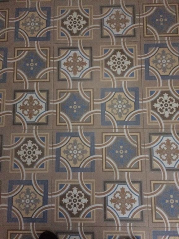 Интерьерное решение ванной комнатыВот такую "веселенькую" напольную плитку положили муж со свекром в ванной комнате на даче. Сюрприз… Что с ним делать не знаю. Теперь нужно подобрать настенную плитку. Что под нее подойдет? Без рисунка однотонная? Цветовую гамму не представляю… но точно не сине-голубая. Помещение небольшое, около 6 кв метров.