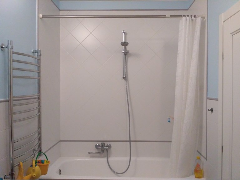 У нас плитка до середины стены, докуда теоретически могут долететь брызги.