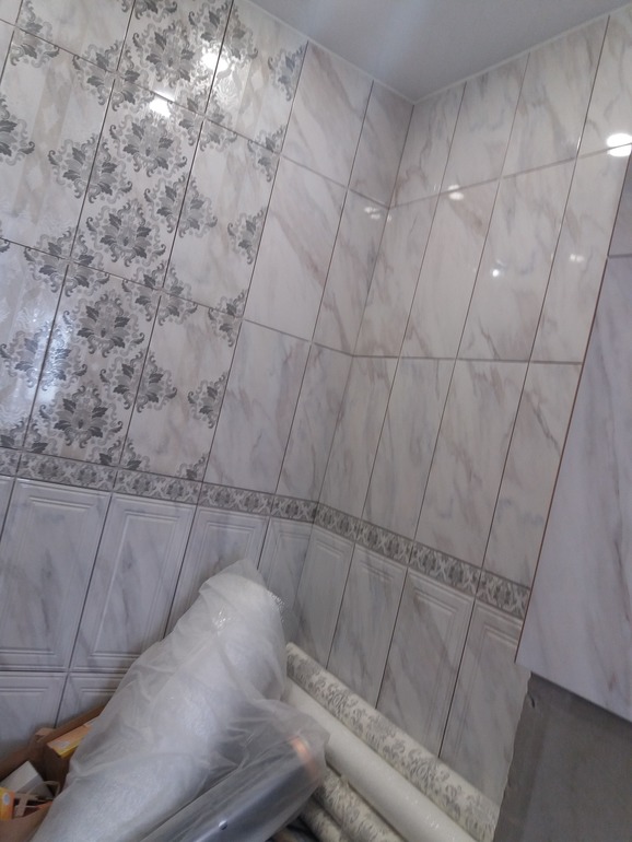 Мы только туалет выложили до середины плмткой. В ванной тоже хотела, но так и не решилась.