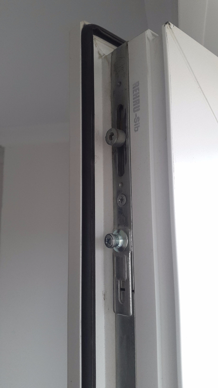 Открыли створку, открутили второй шуруп сверху на боковой грани стеклопакета. На это место прикрутили бочонок с длинным шурупом (идет в комплекте)