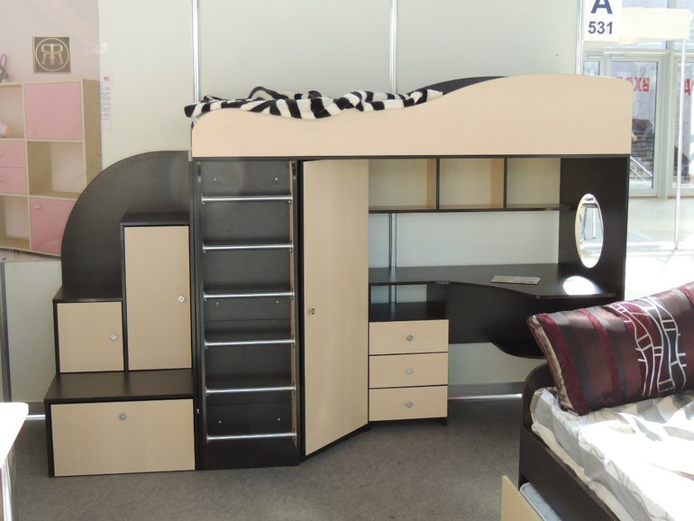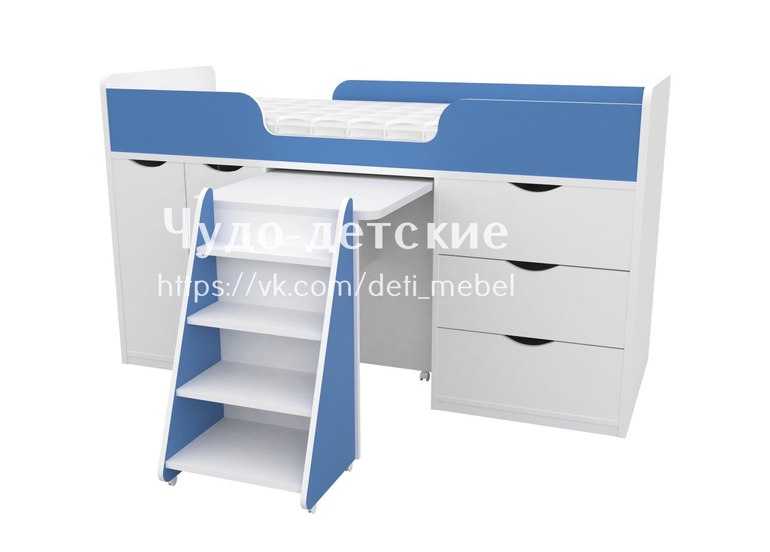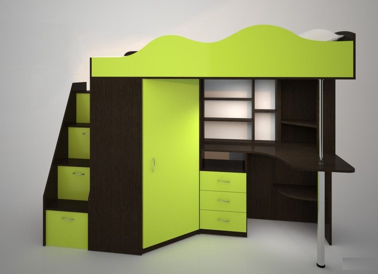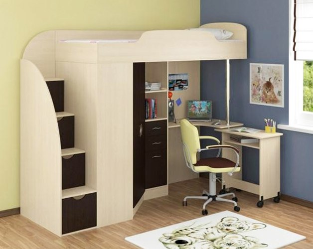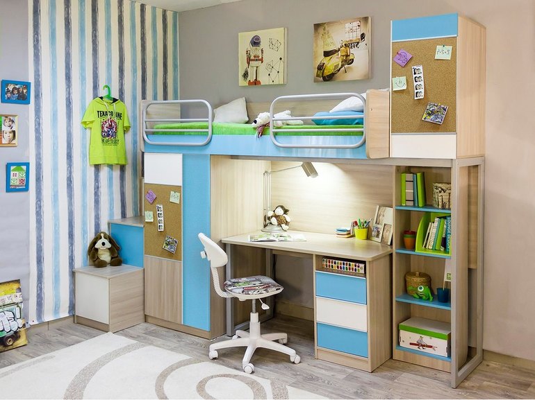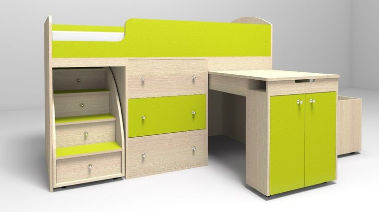 Доброго вечера! Мы делаем любую мебель на заказ, возможно Вам будет это интересно, т.к. сможем воплотить любые пожелания.) Ну а как совет - ни в коем случае не устраивайте под кроватью рабочее место ребенку. Света там настолько мало, что просто караул. Модули есть весьма приличные и функциональные и с кроваткой/диваном внизу.