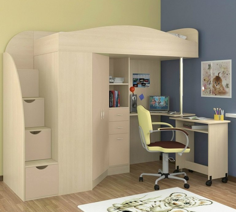 Интерьерное решение детской комнатыВыбираю ребенку детскую кровать. Предпочтение отдаю кроватям чердакам или многофункциональным, там где еще выдвигается стол и много всяких шкафов. Пока не совсем представляю как подобные кровати вписываются в интерьер. А какие кровати у ваших детей и как они смотрятся в интерьере? Если можно с фото. Спасибо.
