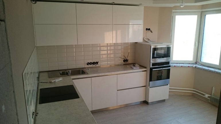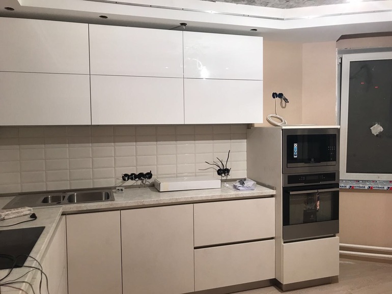 Фартук хотим белый кабанчик глянцевый, всю стену где вытяжка.