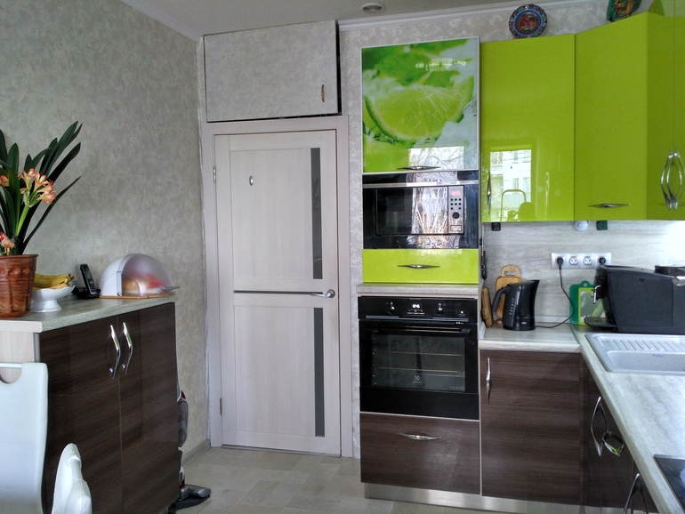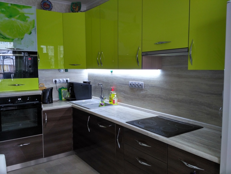 Кухня из пластика. Цветовое решение очень позитивное! Обожаем наш лайм