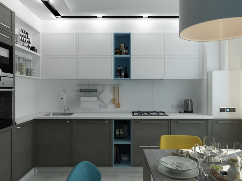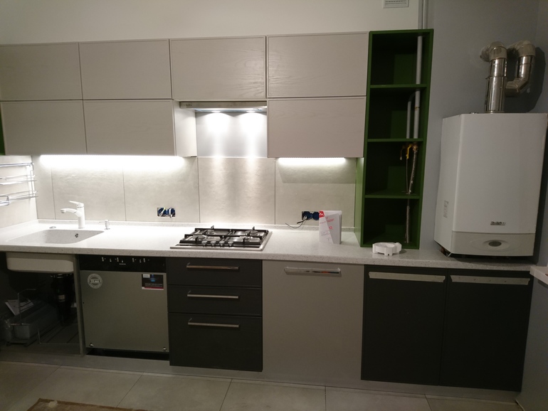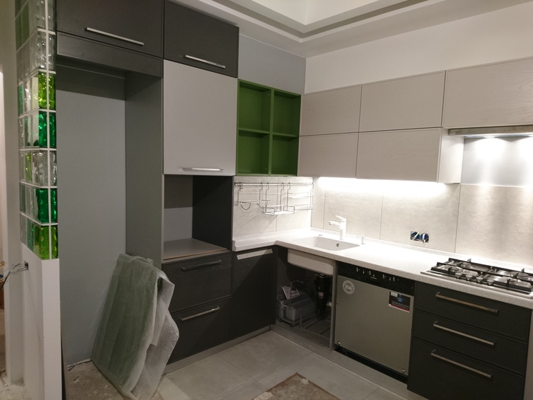 Жанночка, очень рада видеть наш чудесный проект!!! Как жаль, что на этапе воплощения было много проблем с газовым оборудованием. Пришлось несколько пересмотреть детали. А в итоге когда мы заказали кухню... Был декабрь и так хотелось чего-то тёплого, весеннего, что голубой в итоге заменили на зелёный, как мы с вами в ванной делали. В общем, реализация ещё не закончена, окончательный результат я обязательно вам покажу, а пока вот так