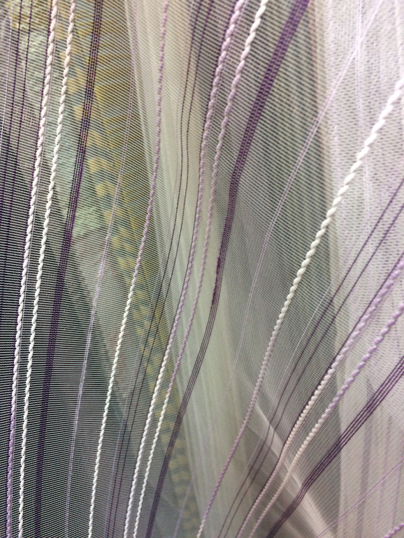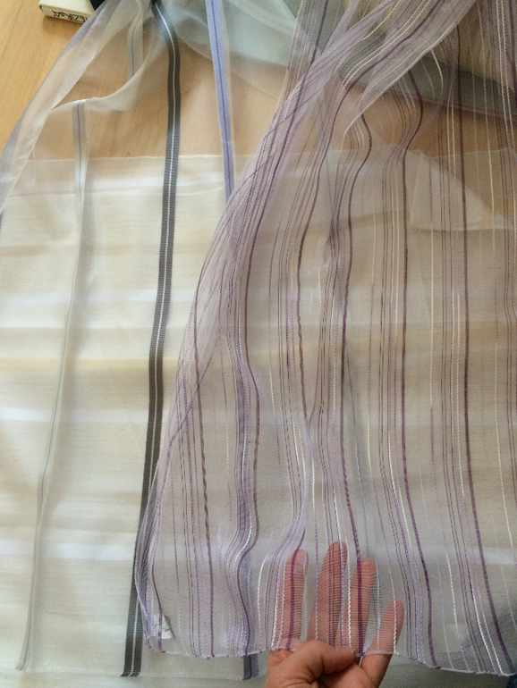 2. Полоска более спокойная серая, сиреневый не интенсивный. Сама тюль более прозрачная предыдущей.