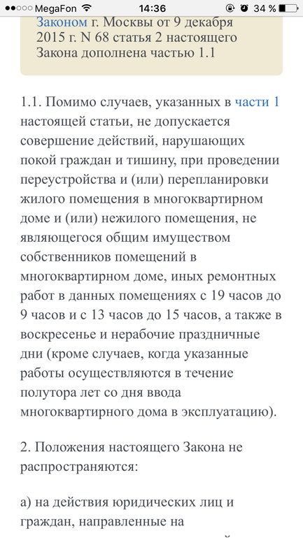 Закон номер 42 от 12 июля 2002 года:ремонтных работ в данных помещениях с 19 часов до 9 часов и с 13 часов до 15 часов, а также в воскресенье и нерабочие праздничные дни (кроме случаев, когда указанные работы осуществляются в течение полутора лет со дня ввода многоквартирного дома в эксплуатацию).
