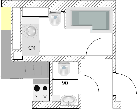 И да, унитаз с раковиной я бы тоже поменяла местами.