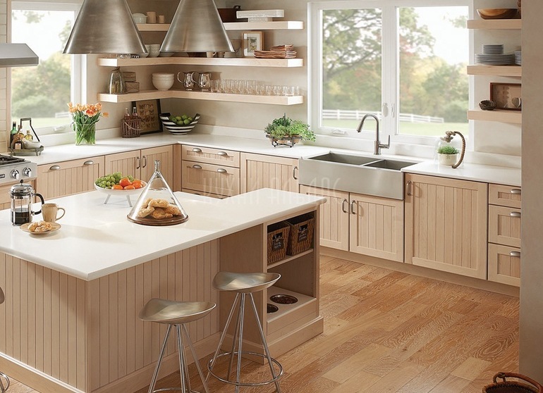 вот пример. Но над мойкой для сушки посуды я бы шкафы вешала