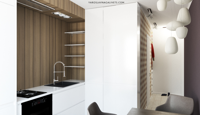 Это Кухня, которую мы сейчас разрабатываем (ее даже на сайте еще нет). Здесь всего 4,5 кв м!!! Посмотрите: сколько всего уместилось!