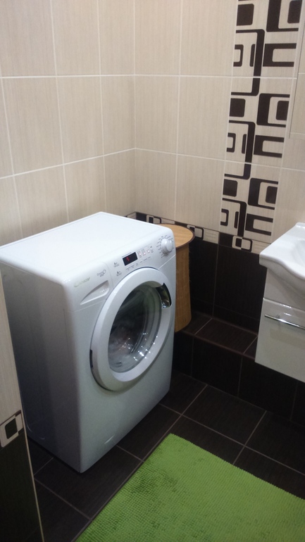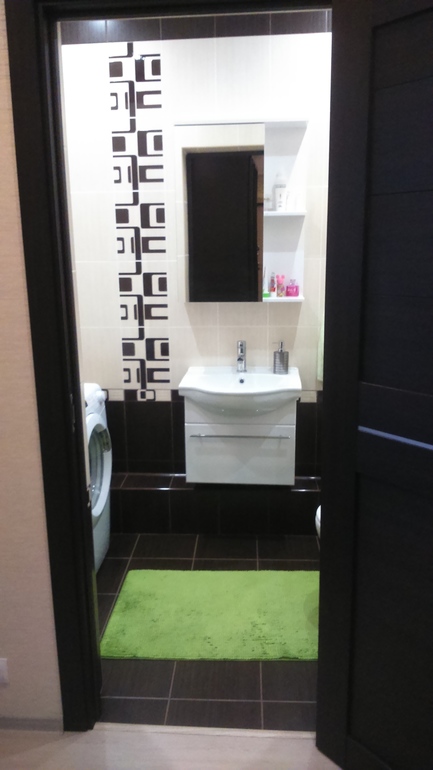 У нас тоже эта плитка в ванной. Сейчас бы пол сделала светлым. Очень видна пыль и капли от воды. У вас очень хорошо получилось. Я бы соорудила шкаф на месте стиральной машины. Внизу стиралка, сверху шкафчик с полочками.