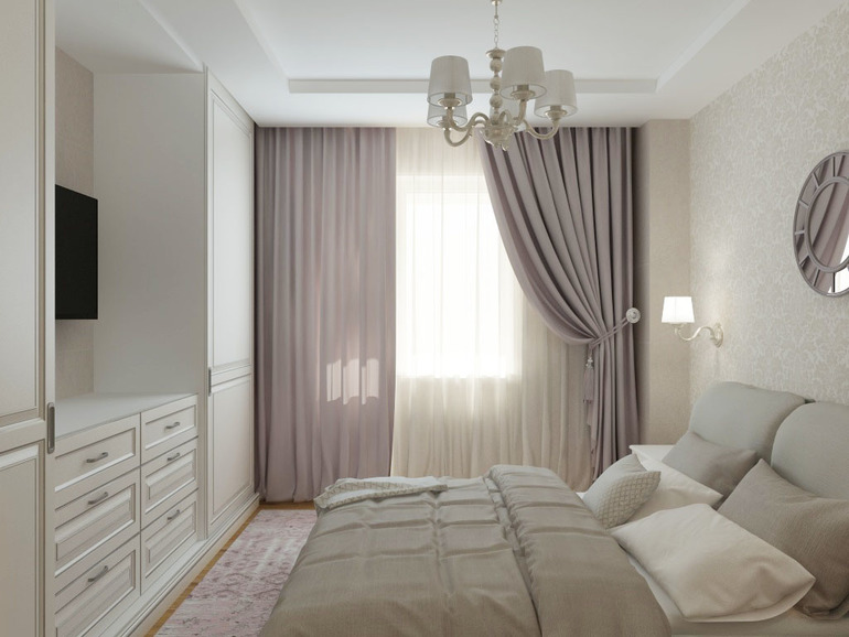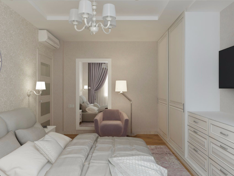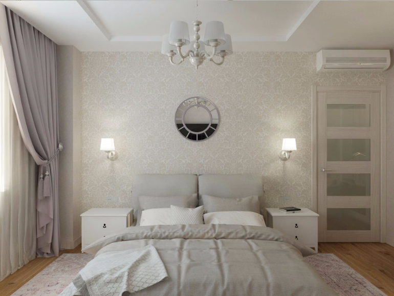 Хочу поделиться с вами проектом спальни в красивом сочетании серо-бежевого и пыльно-розового цветов