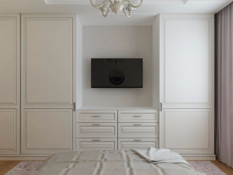 В проекте использованы реальные предметы, кроме шкафа. Он будет на заказ с раздвижными дверями.