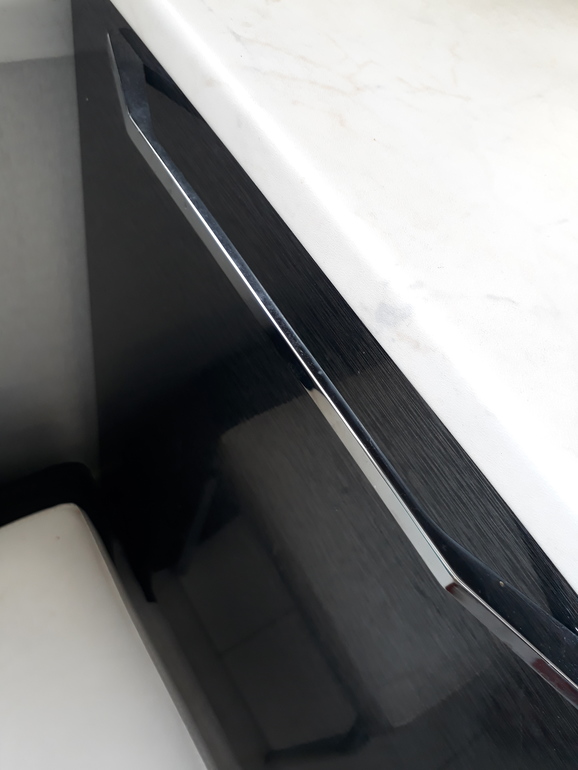 У меня родные ручки Верже. Т.к они плоские на них вилна вся пыль. В новостройке ее очень много. Я по 3 раща в день их протираю. Я б если знала, выбрала вторые. На них менее видна пыли и капли от воды