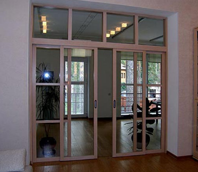 Но дешевле, наверное, будет поставить двери с фрамугой. Кстати, тоже можно раздвижные. Они тоже хорошо смотрятся.
