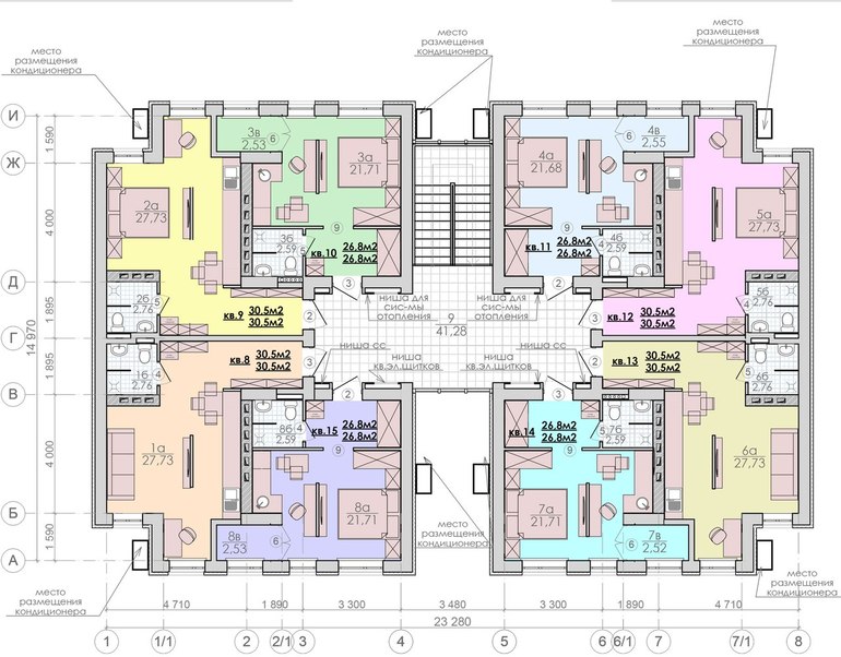 Место для холодильника можно найти. Но меня удивило то, что в планировке "30,5" совсем нет гардеробного шкафа...... Мне планировка "26,8" нравится. А , вообще, конечно, надо будет использовать каждый сантиметр.