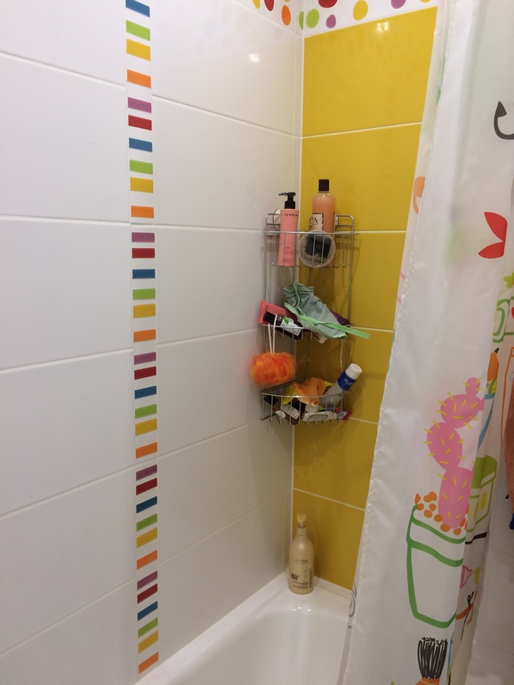 Шкафчик над стиралкой на заказ? Угловая полочка под шампуни на присосках или прикручена? Где такую шторку можно купить?