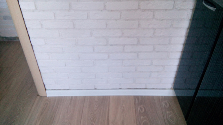 рассмотрела белый плинтус, но шире того, что на фото. Шириной около 150мм. Будет очень эффектно.