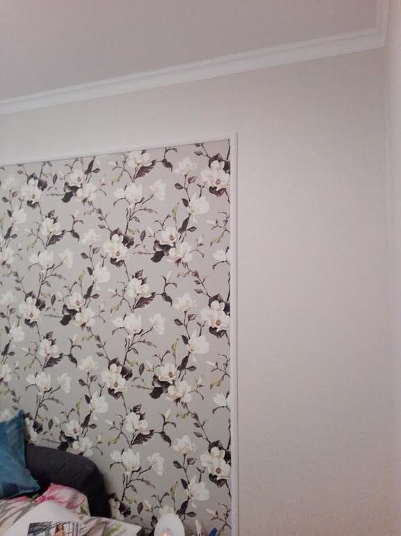Т е рядом с обоями в цветок серые\бежевые. А одну из стен лиловым