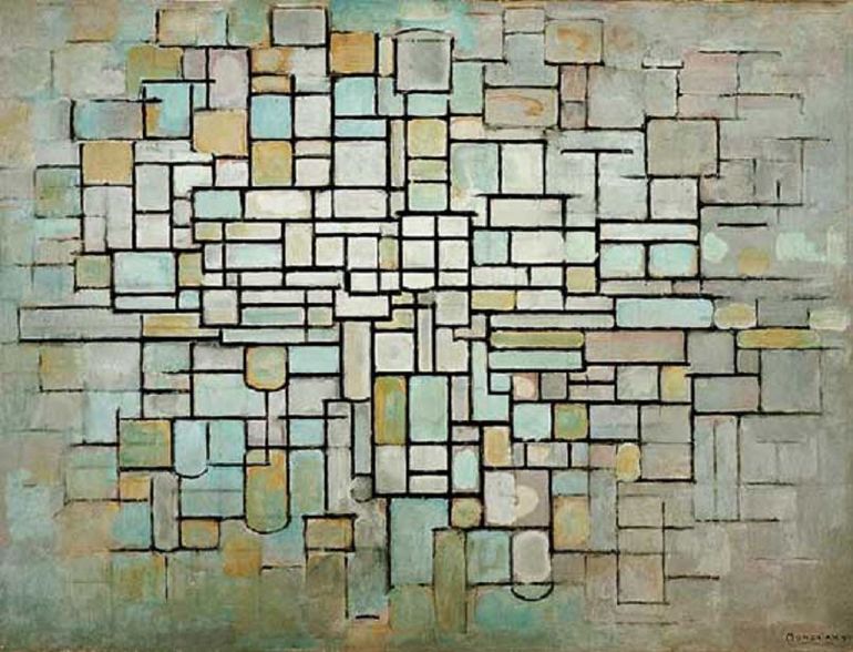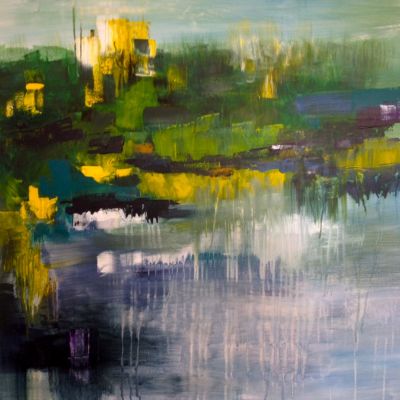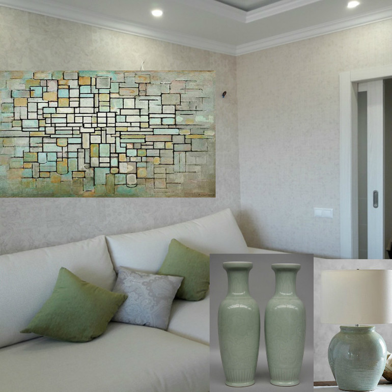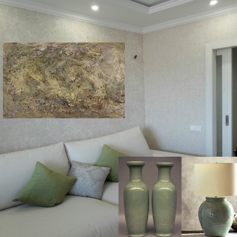 Это должна быть картина красками, вот в таком стиле - стекающими вертикалями, и нежных цветов. И да, прямоугольная без рамы.