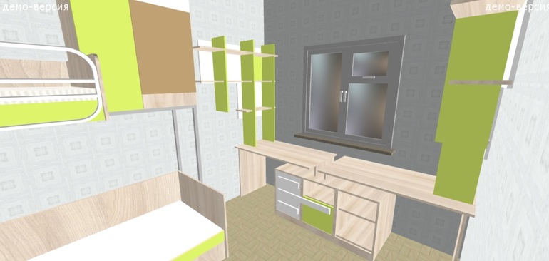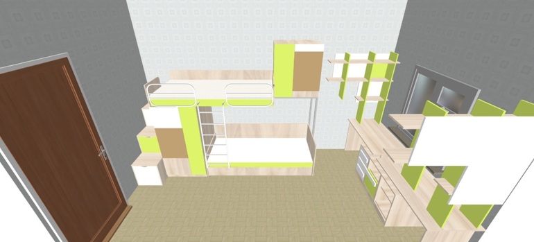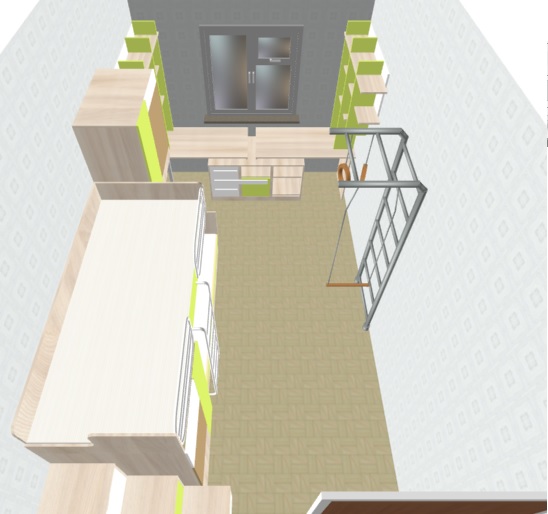 Имеется комната 2,5 м х 4,5 м. В ней пока будет жить сын (5 лет). В будущем еще один ребенок. Нужно в ней расставить двух-ярусную кровать, шкаф, шведскую стенку и стол.