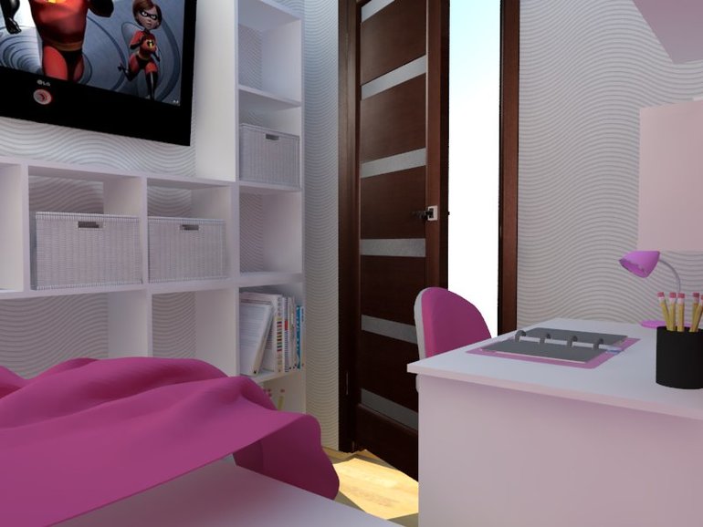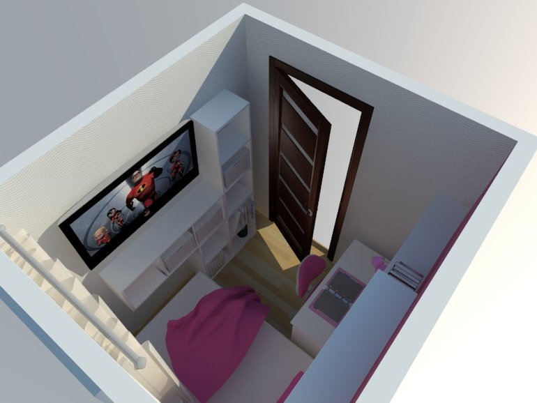 я бы и шести квадратам была рада в детстве. если бы это была Моя комната. тут по расстановке больше и не разбежишься. телевизор поменьше бы сделала