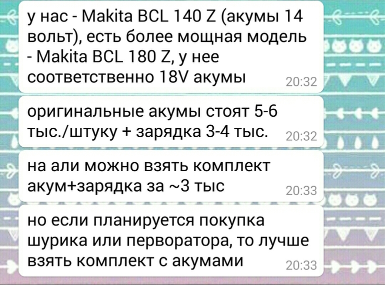 Я взяла макиту послабее на 10 v, белый, у меня не было своих акумуляторов. Очень довольна, мощнее мне не надо.