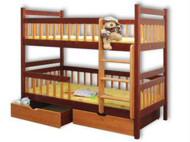 У нас она уже года полтора стояла двухъярусная в однушке, потом сняли двушку- разобрали на две полуторки. Теперь уже в трешке- тоже по отдельности стоят. Плюсы- это все то, для чего собсно и ставят двухъярусные кровати. Минусы: после трех лет эксплуатации и двух переездов много царапин на гевее; у столбиков нижней части отверстия сверху остаются, когда разбираешь; ну и, если берете маленьким детям, им не очень комфортно, потому что это абсолютно полноценные полуторки, со спальным местом 90х190.