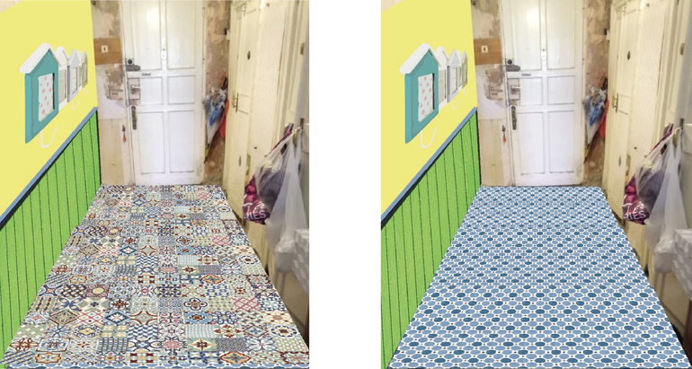 Можно вообще отказаться от идеи пестрой плитки, потожить что-то под дерево..