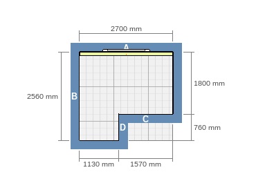Вроде бы неплохо, но места съедает очень много. На полу остается очень маленький пятачок. Девушка-менеджер предложила чуть сократить ширину справа (35 см) и получилось так: