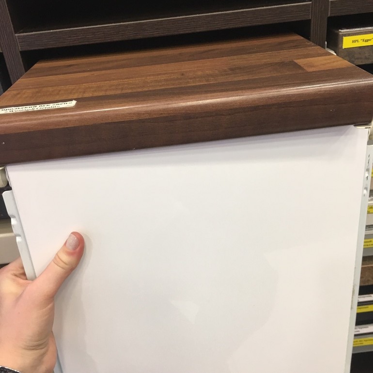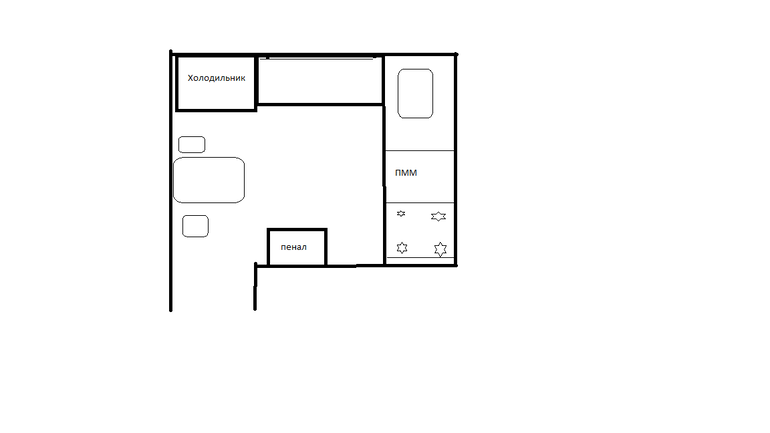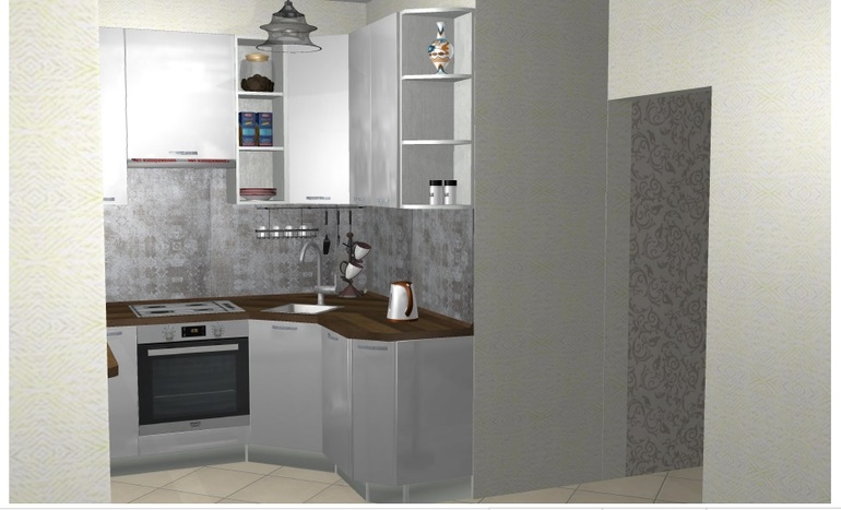 Итак, сначала я пришла в салон с идеей справа сделать столешницу шириной 60. Мне нарисовали вот это: слева от плиты посудомойка. Плита 60 см.