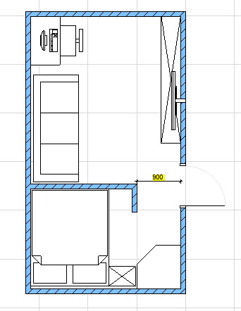 От комнаты хотим 3 в 1: спальня, гостиная, рабочая зона. Понимаю, что места мало. Из нюансов- шкаф-купе в нижнем правом углу до двери.