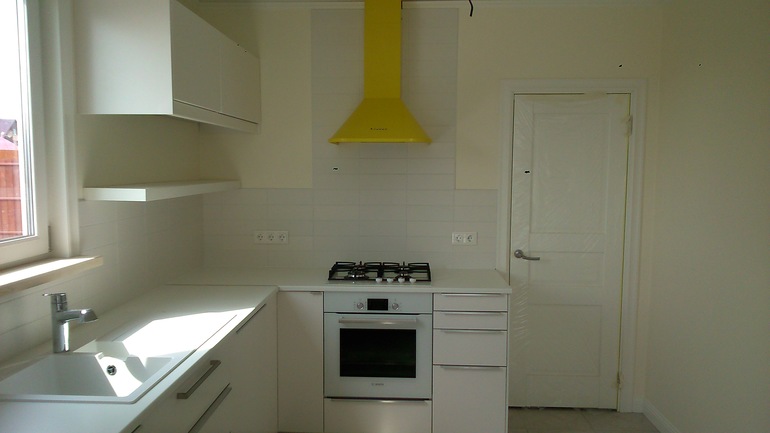 Только установили. Проект кухни создавала сама. В процессе кухня немного изменилась, но в лучшую сторону. Вытяжку покупали в интернет магазине белую. Когда повесили, этот белый оказался прям с голубым отливом. Смириться не получилось и вытяжка поехала в автомастерскую перекрашиваться в желтый. Решение смелое, но она хорошо дружит с тутемчиками. Фасады самые не дорогие Веддинге, но с хорошей фурнитурой и все ящики с подсветкой. Сначала хотела глянец, но теперь я рада, что на фасадах решили экономить. Хорошо, что не глянец, а матовые.