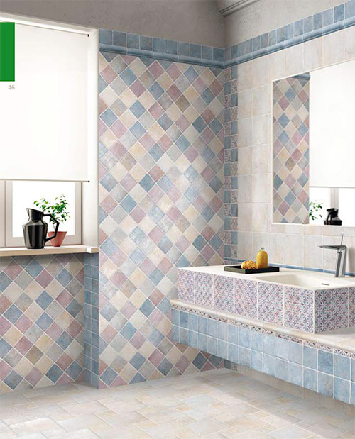 2) длинная стена цветными ромбиками, короткая - голубыми квадратиками