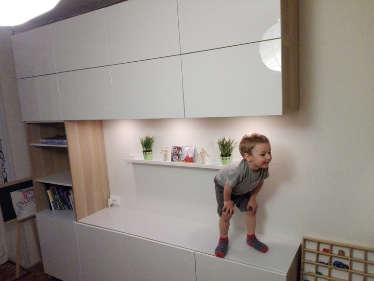 Вся пляска пошла от кухни, т.к. там в рабочей зоне розетки на высоте 110 и должны быть, потом в зале - мы не знали как точно и какая мебель будет стоять, или висеть тв или диван стоять - муж принял решение все розетки на 110. В зале тоже ладно - одни розетки все равно закроются ТВ, хоть на тумбе он будет стоять хоть на стене висеть. Другие розетки в зале будут аккурат по обе стороны дивана и над ним - ну тоже ничего, т.к. у родителей например розетки на 70 см за диваном и они вечно "срывают" розетки при раскладывании дивана.