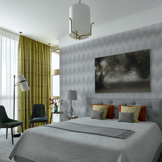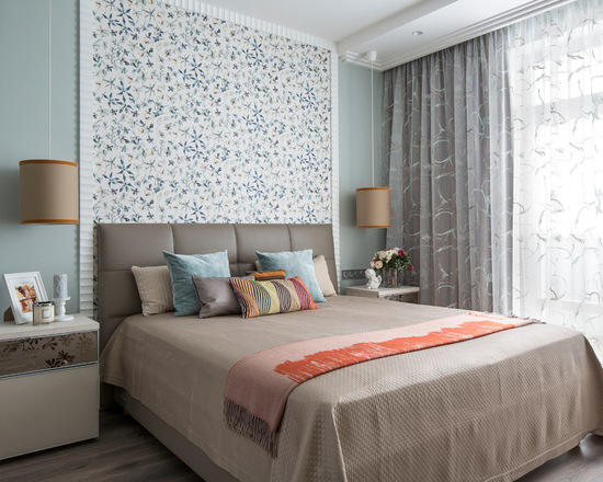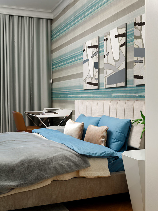 Мне нравятся все оттенки серого с коричневым. Можно бирюзу, оливу, сирень. Можно за изголовьем камнем выложить или ламинатом стену оббить. У вас спокойные тона, выберите понравившиеся обои, одну стену сделайте акцентную, а остальные из той же коллекции однотон. Добавите цвета в текстиль.
