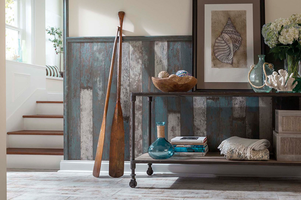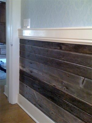 Вбейте на Pinterest запрос laminated half-wall. Будет много всяких картинок. Наверное, особенно хорошо будет смотреться ламинат имитирующий старые крашеные доски. На это на любителя, конечно.