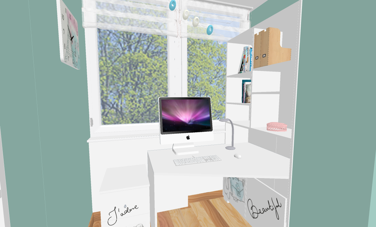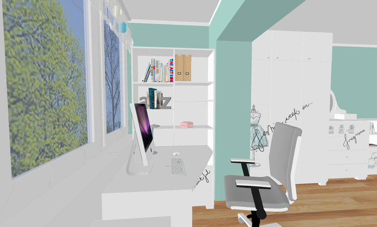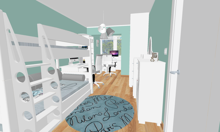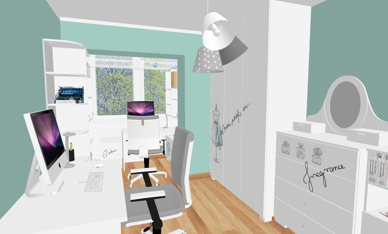 Очень гармонично получилось, все необходимое есть. Хорошо, что рабочие столы отдельно находятся-не будут мешать друг другу.