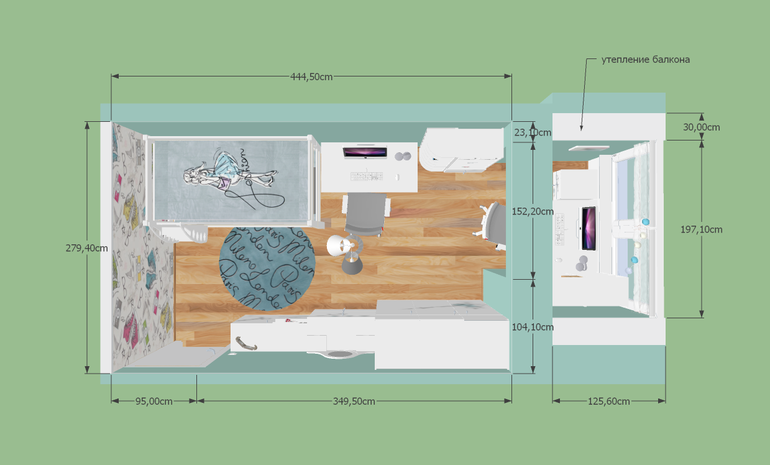 Интерьерное решение детской комнатыВыкладываю проект расстановки мебели в детской для двух девочек. Выполнялось для одной нашей ББ-шки. Может кто-то что-то найдет здесь для себя.