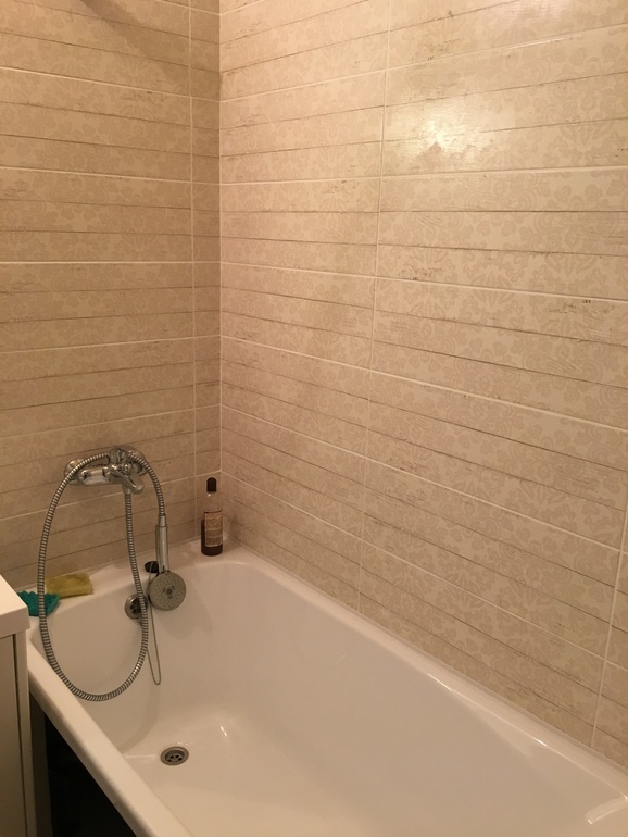 Остался потолок и полотенцесушитель, но держит он стену и короб, поэтому ждём.