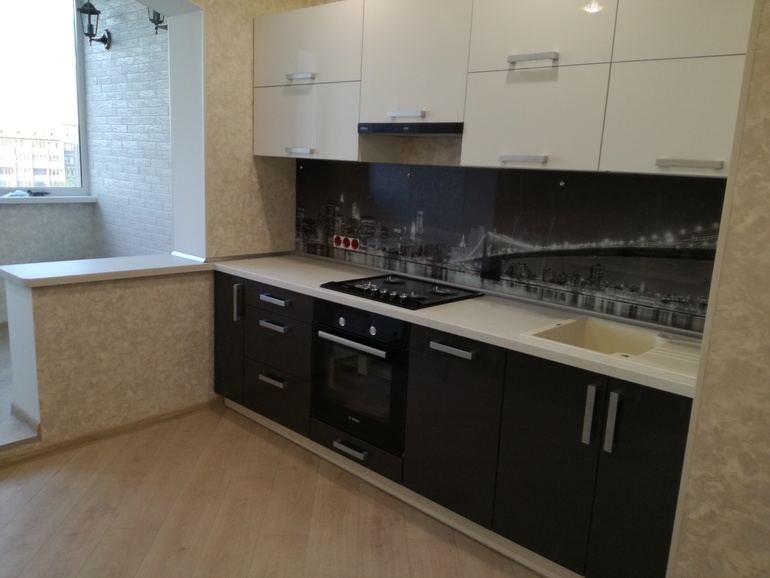 Интерьерное решение кухни Девочки поставили нам кухню, у меня вопрос лоджия нас совмещенная с кухней хотим заказать римские шторы каким вы видите их цветом???А вот и наша кухонька,