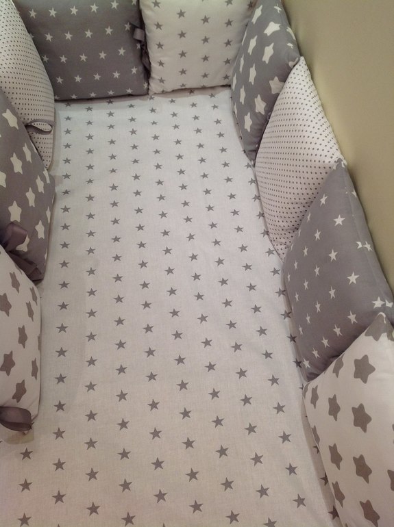 Вот я шила для мальчиков в кроватку. У вас же мальчик, я правильно поняла?) А если хотите можете скинуть фото комплекта со зверятами, я вам ткань помогу подобрать для бортиков)