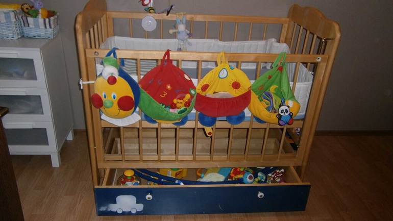 Да, ребенок большой, в кроватке он будет только спать, просто так лежать не будет. Может быть лучше над кроватью повесить на стену какую-то картинку.