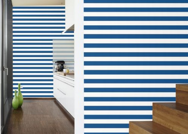 Добрый день! Хотелось бы конечно понимать комплексное решение интерьера: площадь, какая мебель используется, какие еще цветовые акценты планируются, чтобы понимать насколько гармонично всё будет работать вместе. Возможно, будет перебор с геометрией и из-за мелкого масштаба рисунка рябить в глазах, лаконичный синий в этом случае успокаивает пропорции. Да и вообще, согласно психологии цвета синий очень благоприятный цвет, так что возможно следует присмотреться к варианту: одна стена в полоску, а остальные синие или только одна синяя, а две другие белые. A.S. Creation вполне хорошие обои, соотношение цена - качество достойное, использовала 96240-5, 2085-14 - жалоб нет.