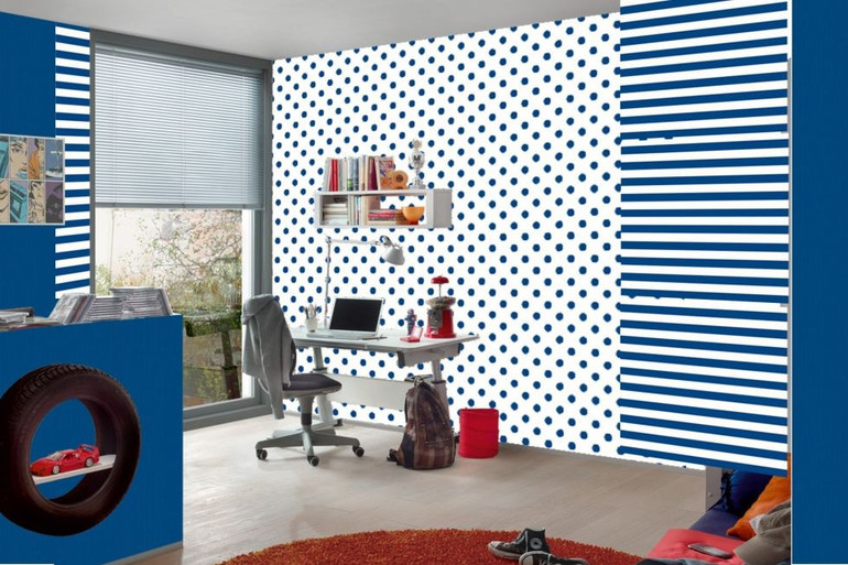 Дорогие дизайнеру, прошу Вашего совета. Хочу сделать сыну комнату в морском стиле. приглянулись вот такие обои. Так вот в чем вопрос. Имеет ли место быть обоям в горошек в такой комнате. С полоской ясно, но вот хочется мне поклеить обои с полоской на одной стену, горох на другую. Две другие оставить белыми. Обои вот такие. И еще интерессуют отзывы о обоях фирмы. A.S. CreationИли же сделать одну стену в полоску, одну синюю и 2 белые?