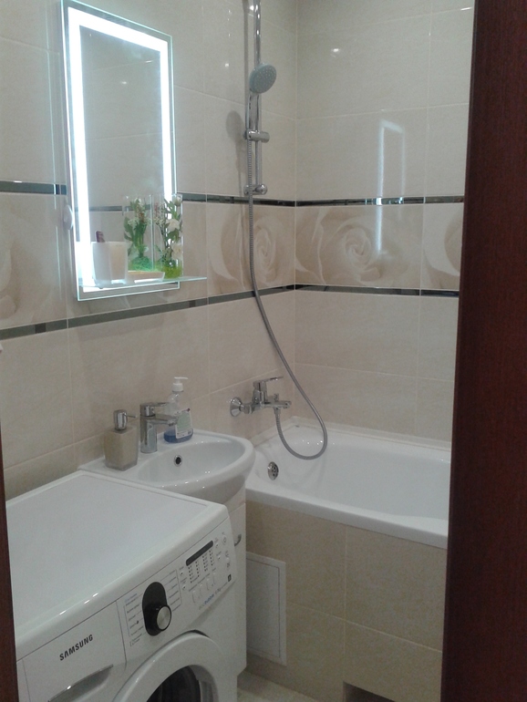 Хотелось, конечно, квартиру в новостройке, но не потянула. Купила небольшую двушку, зато в хорошем месте. Всё рядом, метро-2 минуты пешком. Насобирала деньги на ремонт и началось... И вот спустя 5 месяцев наша квартира готова. Конечно, начало ремонта это было жесть! 3 бригады выгнала, то в зимний период они пробили мне стояк горячей воды (он замурован в стене). Я чуть на 10 лет не поседела, когда мне позвонили в больницу и сообщили, что я затопила кипятком 5 этажей, то при установке разбили окно и не хотели менять, хотя всё было оплачено. И много-много ещё чего. Выгнав бригады, остановились на 1 мастере, который делал всё сам, кроме отопления и с/т. И взял по нашим меркам очень дёшево. Сейчас анализируя всё, я бы ничего не стала менять в своём ремонте. Хотя, есть небольшие грешки, но это уже мелочи. Жаль, что реальные цвета фотик не передал, всё очень нежное. Белые обои только в зале, а везде от сливочного до песочного. А может, я плохой фотограф.